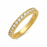 Gracious is an elegant 14k white gold wedding band that embodies timeless sophistication with delicate detailing. Along the top half, a continuous line of brilliant diamonds is bead-set, delivering a subtle yet captivating sparkle, while exquisite milgrain detailing adds vintage texture to the design.