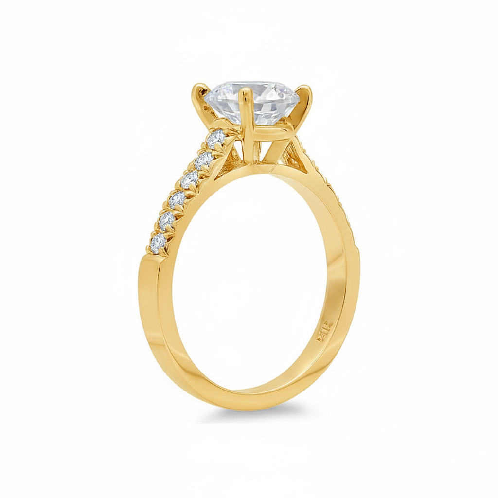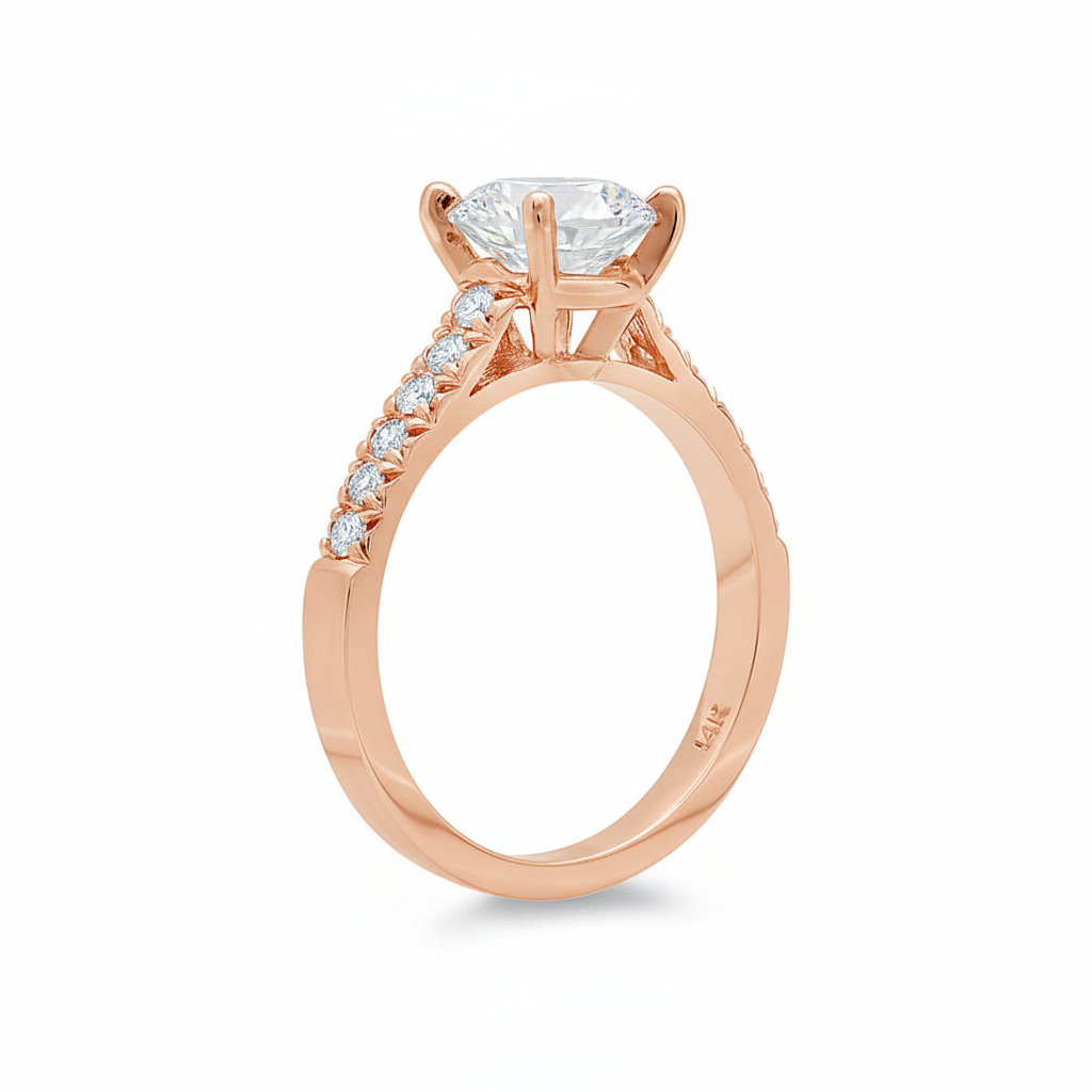 Designed to stand the test of time, the La Paz Engagement Ring is a timeless symbol of love. A brilliant-cut center diamond is held in a four-prong setting, while a beautiful French pavé half-eternity band adds a touch of elegance. This ring is a perfect way to celebrate your engagement, anniversary, or any special moment in your journey together.