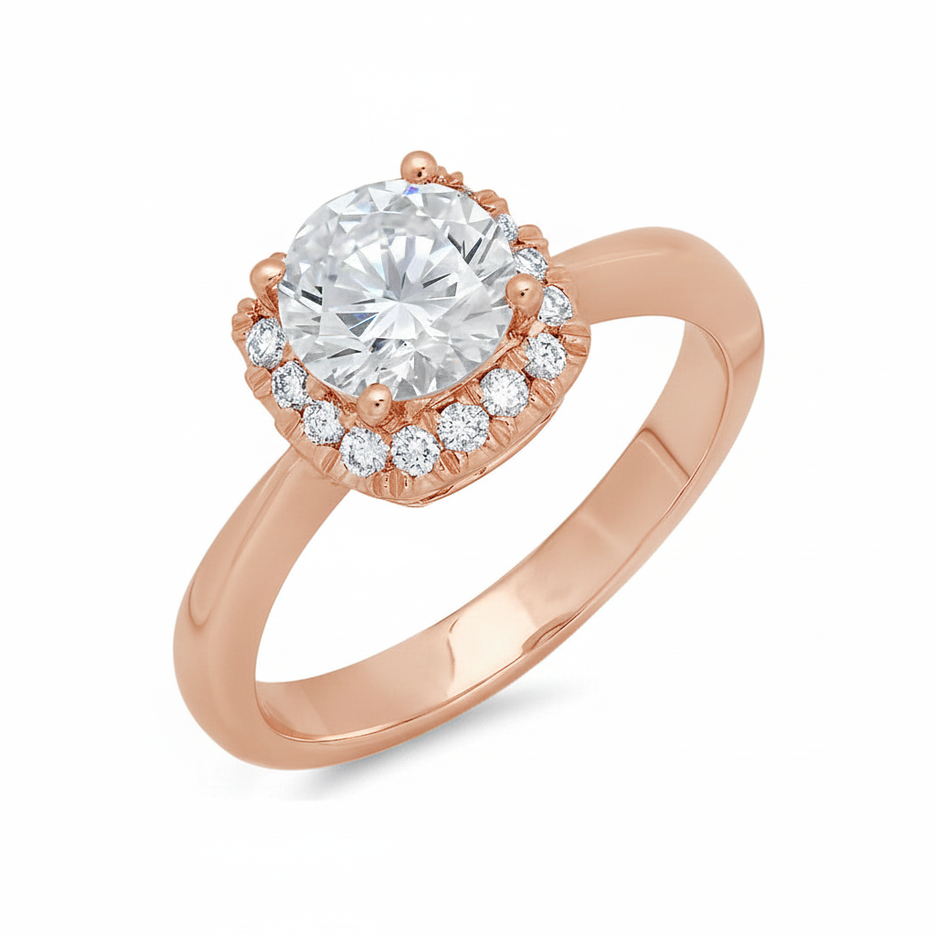 Designed for everyday wear and unforgettable moments, the Osaka Engagement Ring is a modern and elegant piece. A brilliant-cut center diamond is beautifully complemented by a subtle cushion-style pave halo along its base. This ring's clean lines and balanced sparkle make it a powerful symbol of commitment that's sure to be cherished for a lifetime.