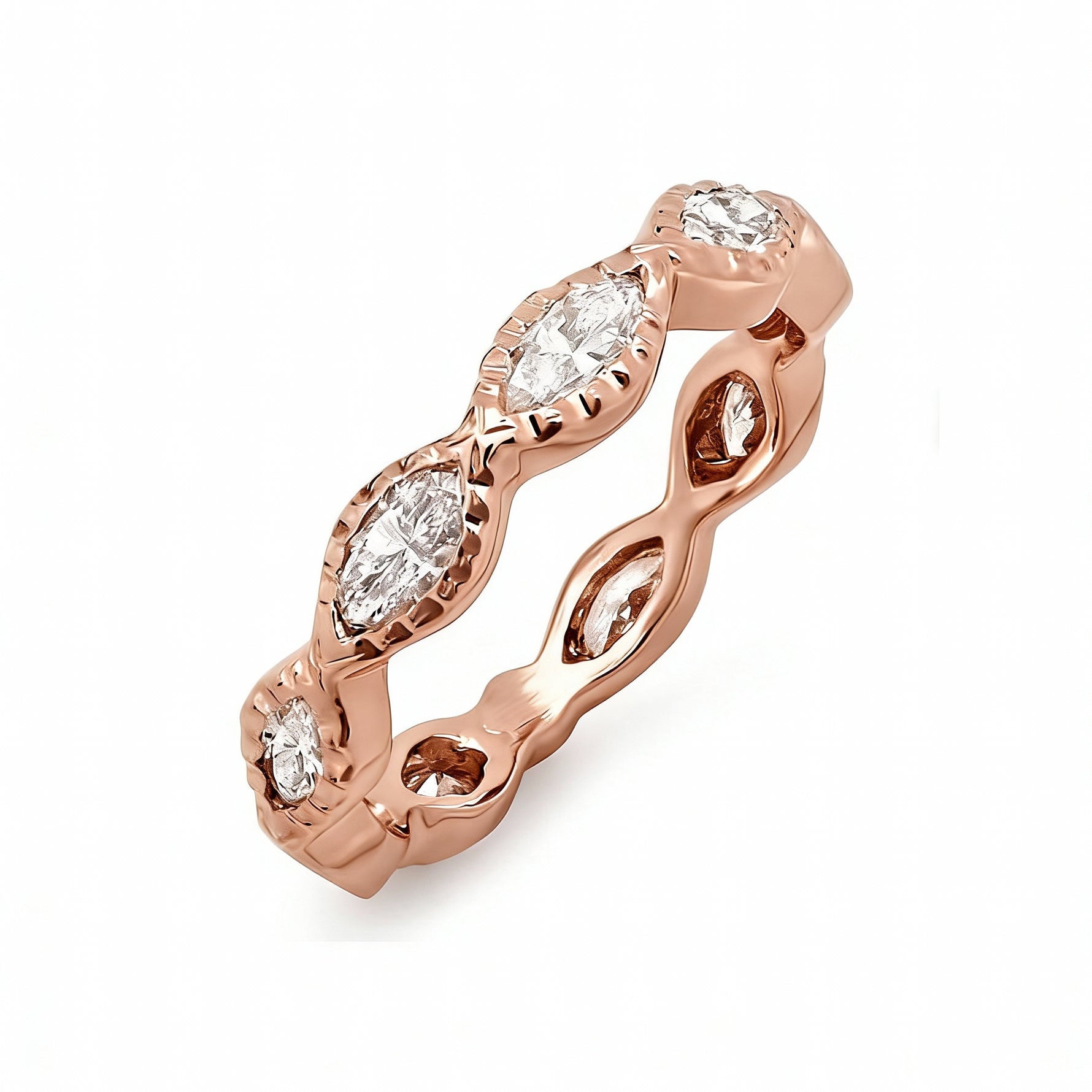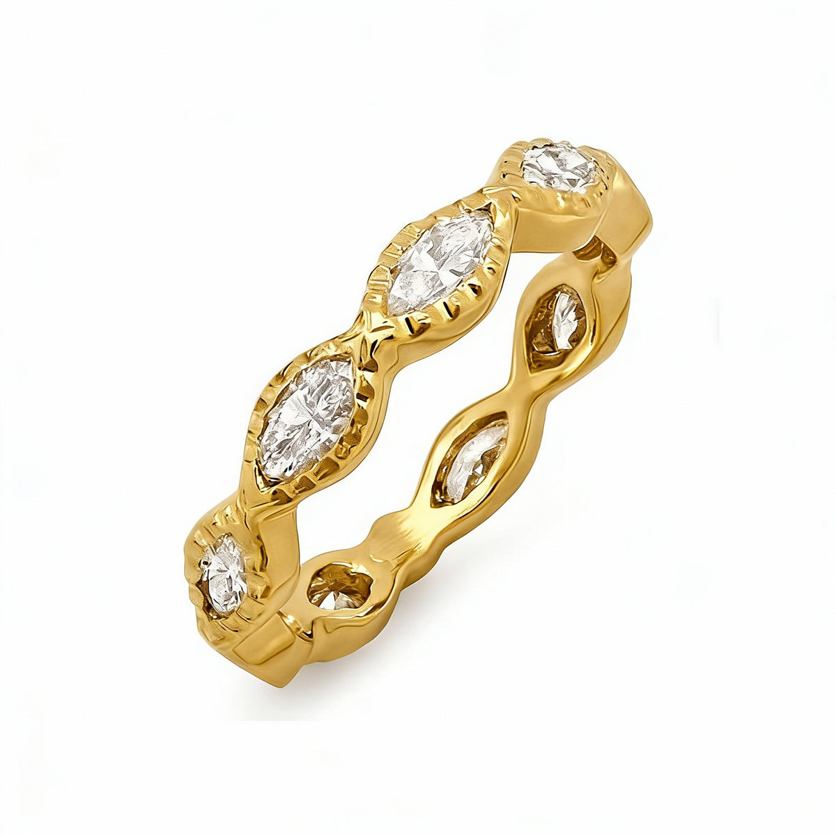 A perfect blend of vintage glamour and timeless design, the Venice Eternity Band features a seamless circle of dazzling marquise diamonds. Set in a scalloped-edge bezel, the continuous sparkle creates a look of effortless luxury. This ring's elegant silhouette is perfect for stacking or as a refined wedding band.