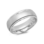 This Men's Band is a sleek, modern wedding ring that showcases a bold, masculine silhouette and a crisp, high-polish finish. Its comfort-fit design features a layered surface with a raised satin-polished section surrounded by high-polish outer edges. Crafted with meticulous attention to detail, this ring pairs perfectly with a suit or casual wear.