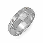 This Men’s Band is a classic men's wedding ring that blends timeless style with a refined diamond accent. Artistic channels and flush-set chocolate diamonds add a touch of understated brilliance to this comfort-fit band. Designed for daily wear and special occasions, this ring adds masculine elegance to any groom's look.