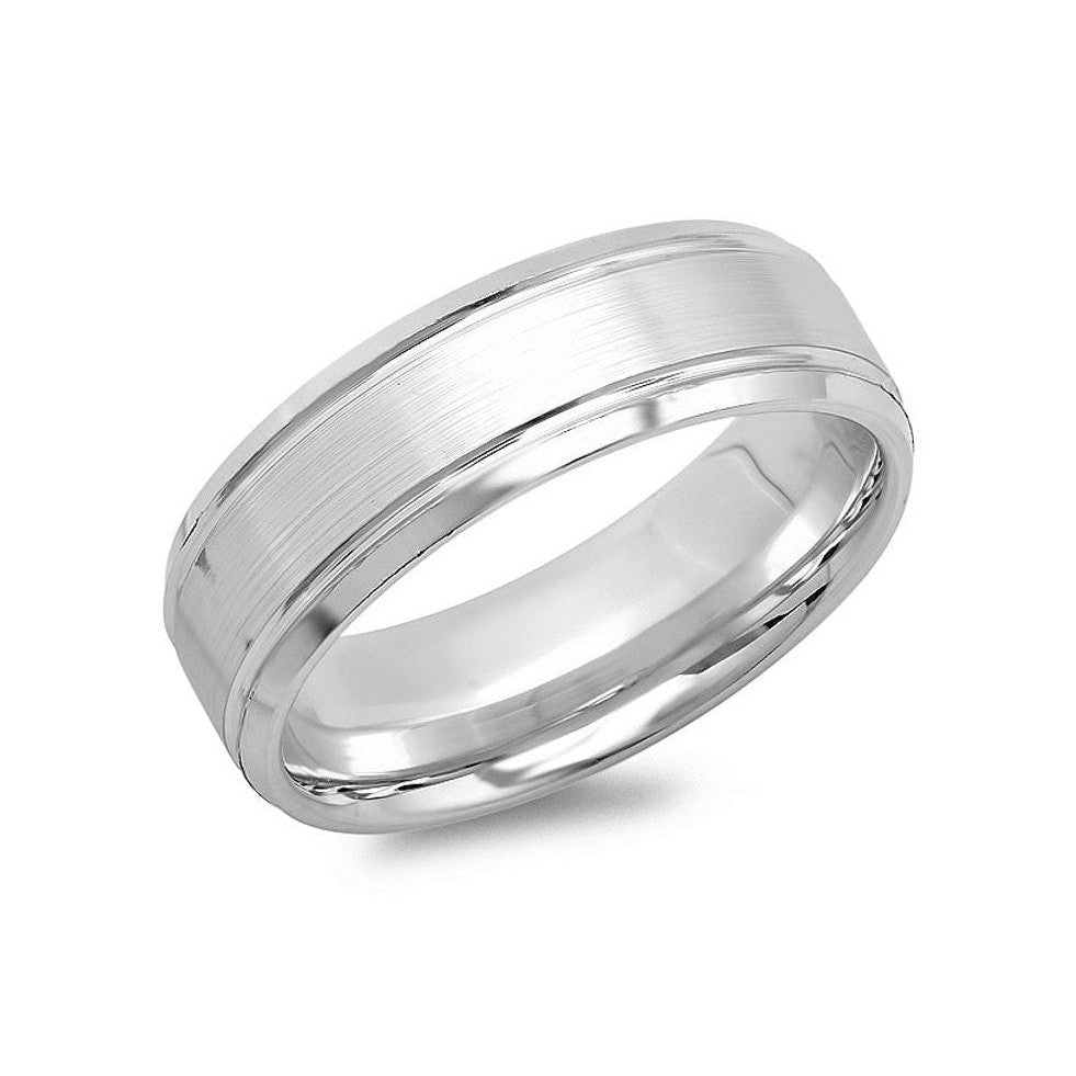 The Man's Band is a timeless wedding ring that embodies a bold, masculine silhouette. It features a comfort-fit band with a slightly domed, polished surface and two parallel cutouts with a satin finish in between. Designed for everyday wear, this durable ring offers a comfortable fit and dependable craftsmanship that complements both formal and casual attire.