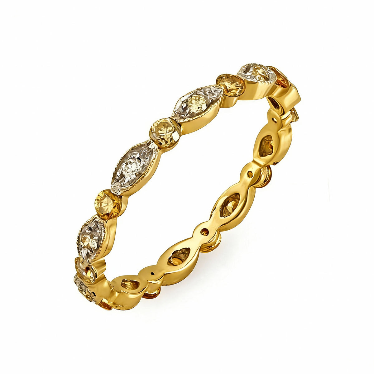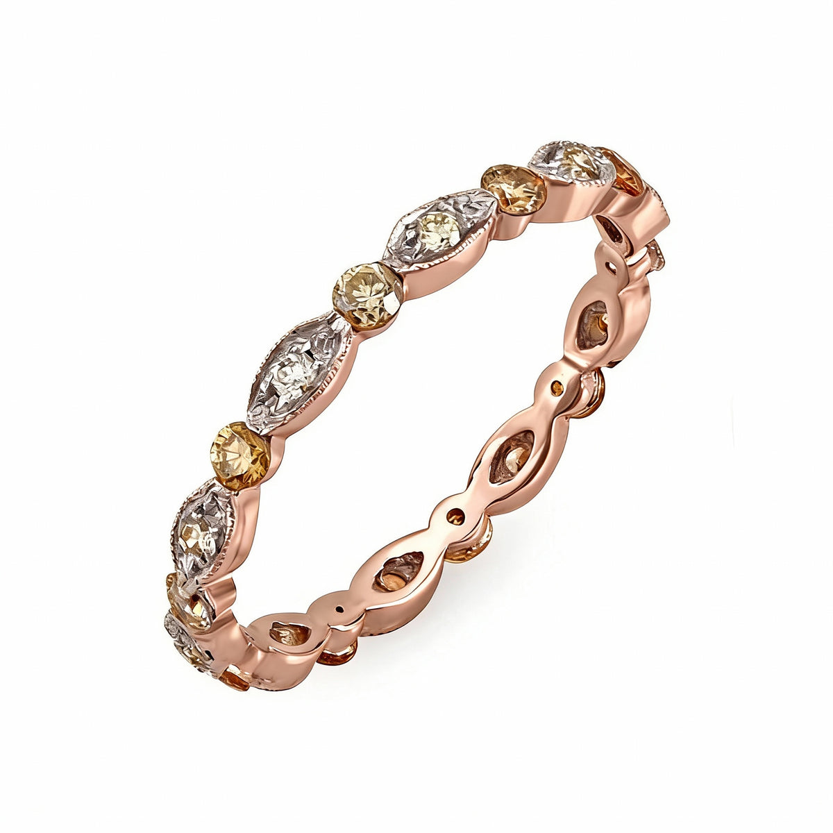 Combining classic elegance with modern wearability, the Forever Eternity band features an alternating pattern of sparkling marquise and round diamonds featuring champagne and white diamonds. Designed to shine from every angle, this ring offers a beautifully vintage appeal and versatile style for everyday luxury.